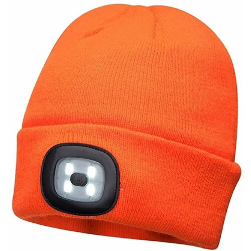 LED фонарь вязаная шапка 2 в 1 MyPads A154423 отстегивающейся встроенный фонарь с USB зарядкой безразмерная оранжевая