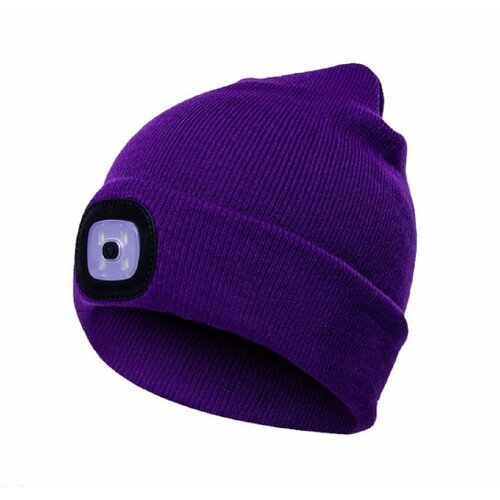 LED фонарь вязаная шапка 2 в 1 MyPads A154423 отстегивающейся встроенный фонарь с USB зарядкой Фиолетовая