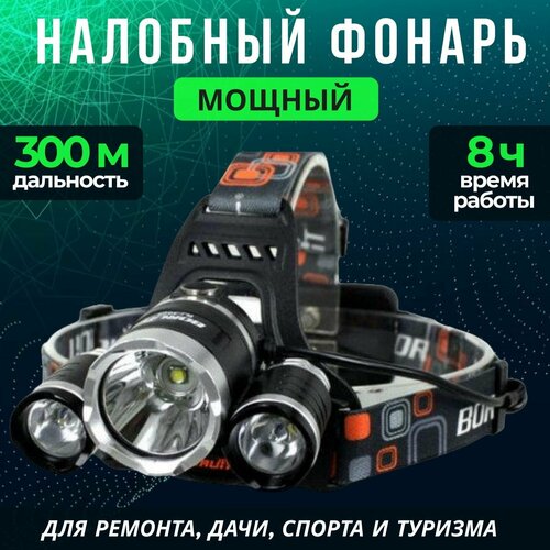 Налобный фонарь / яркий налобный фонарик / мощный дальнобойный фонарь