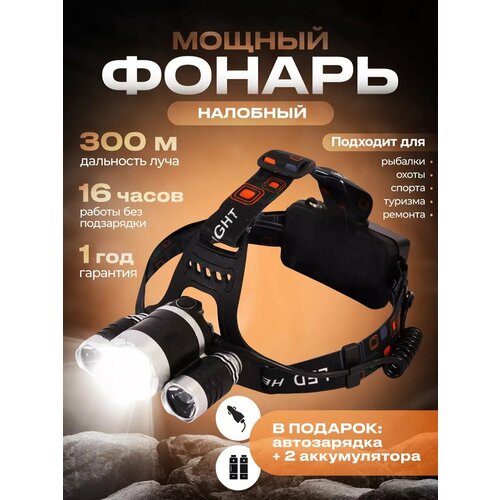 Сверхяркий популярнейший налобный фонарь аккумуляторный с тремя интегрированными фонарями и регулировкой угла аккумуляторный