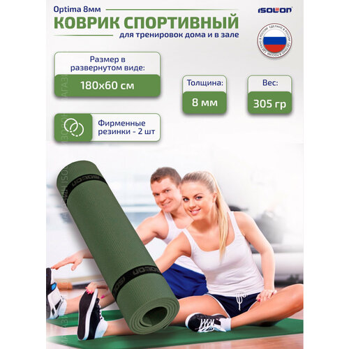 Коврик спортивный и туристический для похода и отдыха ISOLON Optima Light 8, 180х60 см оливковый