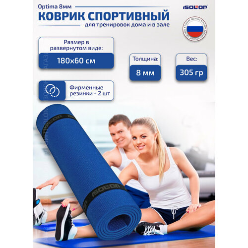 Коврик спортивный и туристический для похода и отдыха ISOLON Optima Light 8, 180х60 см васильковый