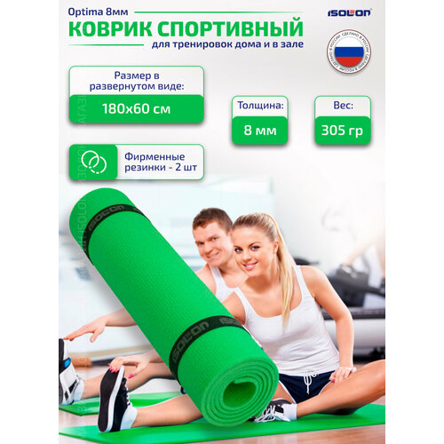 Коврик спортивный и туристический для похода и отдыха ISOLON Optima Light 8, 180х60 см зеленый