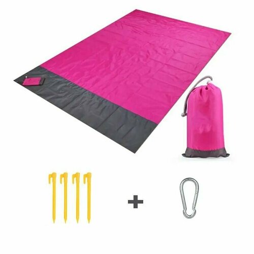 Пляжный коврик туристический 140х200 см розовый/ складной, водонепроницаемый ковер для пляжа и пикника