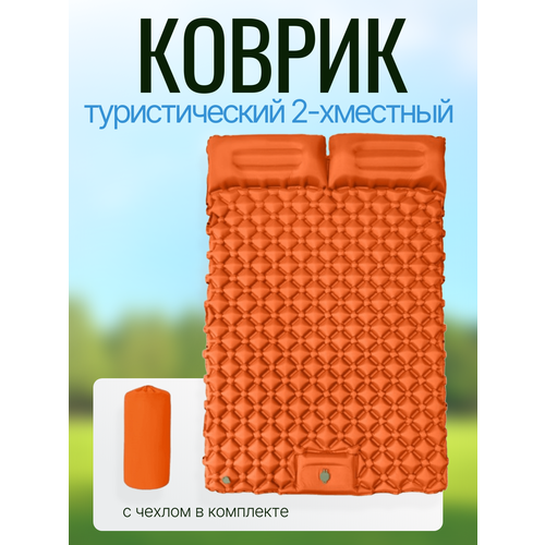 2-хместный коврик для кемпинга и походов / Матрас со встроенным насосом в палатку оранжевый