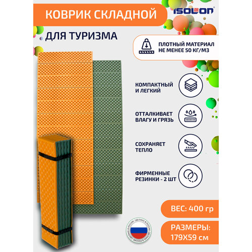 Коврик плотный складной для туризма и спорта Tourist Flex 179 х 59 х 1.5 см оранжевый, хаки