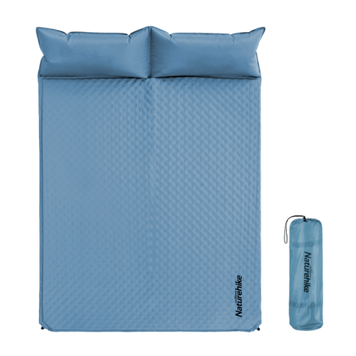 Коврик самонадувающийся Naturehike двойной, с подушками, 185х130х2,5 см, голубой