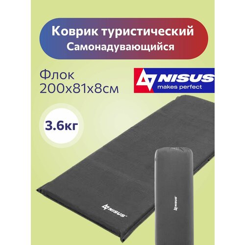 NISUS Коврик самонадув. 200x81x8 (N-008-G) NISUS (флок серый, )