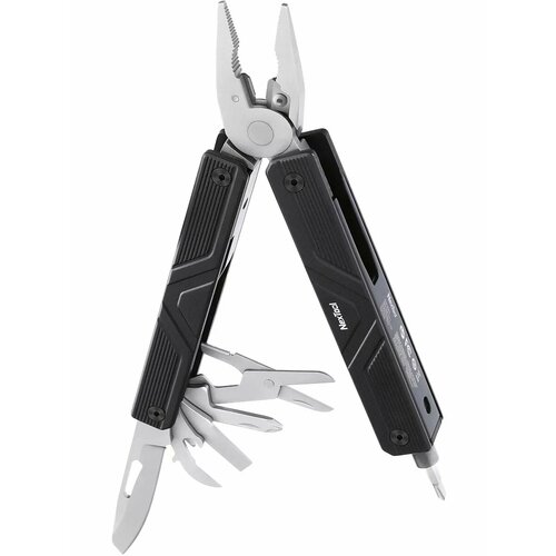 Плоскогубцы с игольчатым наконечником, обычные плоскогубцы, кусачки для проволоки, ножницы, крестообразную и монтировочную отвертку, открывалку для бутылок, консервный нож, нож и даже электрическую насадку для бит. Эти инструменты изготовлены из высококачественной закаленной стали, чтобы соответствовать вашим потребностям и стилю
