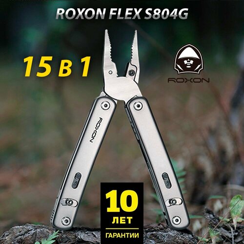 Марка стали : 2CR13 Сталь клинка : 5Cr15Mov Тип замка : Axis Lock Цвет клинка : Серый Гарантия : 10 лет Тип мультитула : карманный,полноразмерный,для электрика,для велосипеда,для выживания Вес : 254 г Количество функций : 19 Чехол / ножны : да Roxon Flex S804G — это универсальный мультитул, главная особенность которого заключается в замене комплектующих. Мультитул можно дополнить инструментами, с которыми вы чаще всего работаете, или убрать неиспользуемые детали. Эта функция значительно облегчит инструмент и добавит ему эргономичность, убирая из комплекта неиспользуемые детали. Для добавления или замены инструментов предусмотрены 10 слотов — по 5 в каждой ручке. В базовой комплектации у мультитула Roxon Flex S804G есть только плоскогубцы, сменные кусачки и отвертка Т8. Также в мультитул встроены 8 вспомогательных деталей, предоставляющих 19 различных функций:нож;крестовая отвертка и шлиц-отвертка;стропорез;открывалки;линейка;инструмент для зачистки и скручивания проводов;напильник;шило;ножницы и тд.Каждый инструмент легко заменяется и фиксируется с помощью специального механизма.Мультитул Roxon с плоскогубцами изготовлен из высококачественных материалов. Сменные кусачки выполнены из стали 5Cr15MoV, известной своей отличной устойчивостью к коррозии и износу. Плоскогубцы изготовлены из стали 2Cr13, а остальные детали выполнены из стали 3Cr13. Все металлические части проходят пескоструйную обработку, которая полирует поверхности, защищает от мелких повреждений и предотвращает появление коррозии.Мультитулом Roxon Flex S804G имеет эргономичный дизайн. Изогнутые ручки со скругленными ребрами надежно лежат в ладони, а благодаря сбалансированному весу рука не устает при длительной работе с инструментом.На одной из рукоятей расположена клипса для крепления складного мультитула на кармане или на поясе. Для безопасной транспортировки Roxon Flex S804G оснащен замком Axis, который надежно фиксирует инструменты в сложенном положении. Это предотвращает их случайное открытие. В комплекте с мультитулом Roxon идет нейлоновый чехол для удобства хранения и перемещения, а также специальное приспособление для фиксирования сменных инструментов.в базовую комплектацию входят плоскогубцы, сменные кусачки и отвертка Т8;вспомогательные инструменты: нож, крестовая отвертки и шлиц-отвертка, стропорез, открывалки, линейка, инструмент для зачистки и скручивания проводов, напильник, шило, ножницы и тд.материал сменных кусачек — сталь 5Cr15MoV;материал плоскогубцев — 2Cr13;материал остальных деталей — 3Cr13;обработка стали — пескоструйная;10 слотов для установки сменных инструментов;приборы фиксируются с помощью замка Axis;в комплект входит нейлоновый чехол для хранения и фиксатор для сменных инструментов;гарантия — 10 лет.