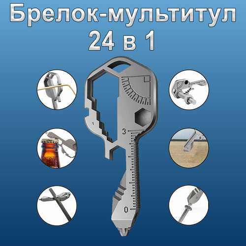 SkiDee мультитул ключ , многофункциональный брелок для ключей , универсальный ключ 24 в 1 , 7см*2,9 см* 0,5см, вес 25 гр