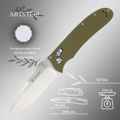 Лезвие - сталь D2. Наконец-то она реализовалась и в G704, ведь именно ее Ganzo предпочитает в своих новинках. Ценители давно ждали смены марки стали у данной модели. На это есть причины. Сталь D2 на сегодня считается одной из лучших для ножей. Держит заточку, стойкая к деформациям, высоким температурам и коррозийным процессам.