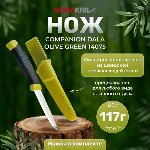 Компактные размеры и легкий вес обеспечивают ножу мобильность и не обременяют владельца во время пешего похода или при подъеме на вершину. Длина ножа 23,3 сантиметра, а вес 117 грамм. Для удобного ношения, в комплекте с Morakniv Companion идут ножны. Также производители Morakniv предупреждают о том, что лезвие ножа нельзя использовать с огнивом. Это издержки выбора в пользу более острой и прочной кромки ножа.
