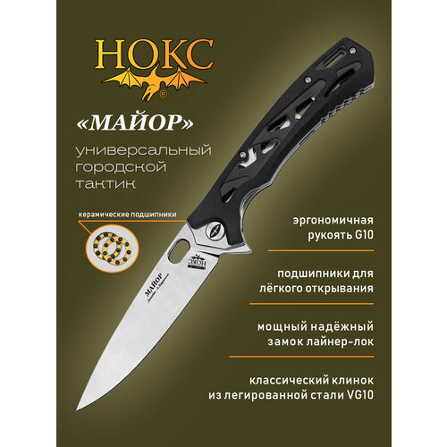 Нож складной нокс 328-330406 (Майор), сталь VG10, городской тактический "фолдер"