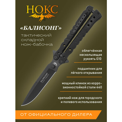 Нож складной нокс Балисонг (203-440401) в подарочной коробке, современная бабочка, сталь 440