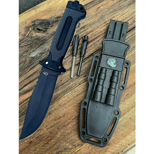 Нож тактический Columbia 4058В (компас, огниво, свисток, точилка) ручка темная