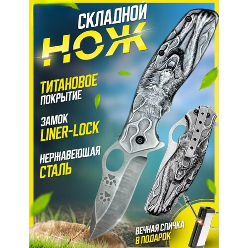 Складной нож Волк. Туристический нож в поход, для охоты и рыбалки, для туризма, вечная спичка в комплекте