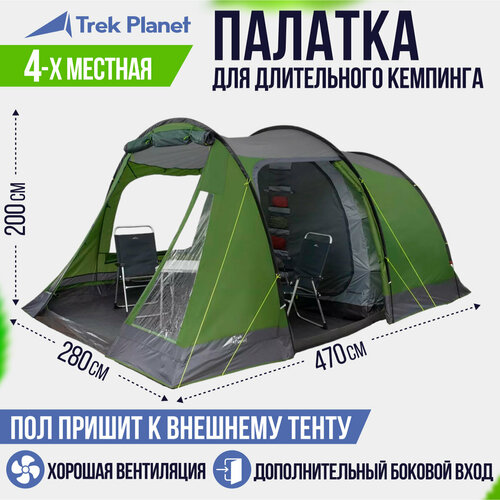 Четырехместная палатка TREK PLANET Ankona Lux 4 зеленая 20229 подойдет для продолжительного кемпинга с семьей и друзьями.