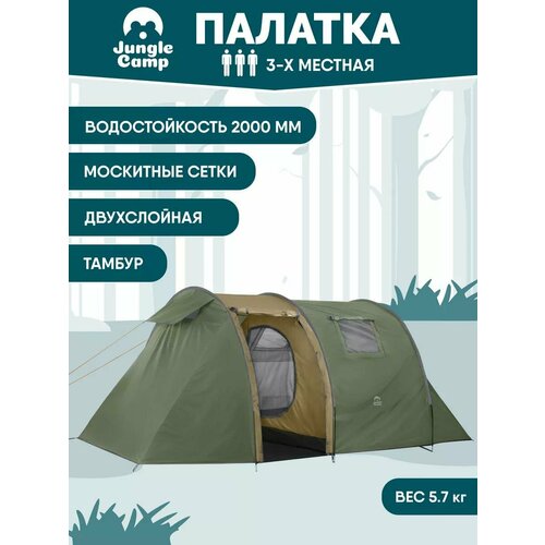 Двухслойная 3 местная кемпинговая палатка с тамбуром JUNGLE CAMP Palermo 3. Для туризма и рыбалки