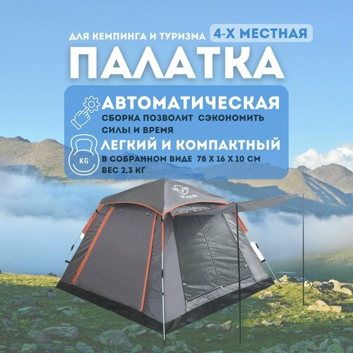 Vlaken CFC-002 - туристическая четырехместная однослойная палатка для путешествий. Изготовлена из прочных и качественных материалов, включая полиэстер, стекловолокно, резину, нержавеющую сталь и полиэтилен. Палатка комплектуется сумкой и 4 наземными колышками для фиксации, что облегчает ее транспортировку и установку на месте. Данная палатка будет надежным выбором для туристического снаряжения, которое обеспечит комфорт и защиту во время поездок на природу. Палатка обладает противоштормовыми растяжками, крыльцо против влаги и дождя. Швы герметичны, надежный каркас из алюминия и пластика, тент устойчив к разрыву и повреждениям, что увеличивает время использования. Размер: 215х215х145 см
