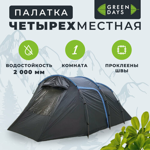 «Палатка 4х-местная, 255+225х270х155 см, 2 слоя, 1 комн, с москитной сеткой, Green Days, Tunel tent»
