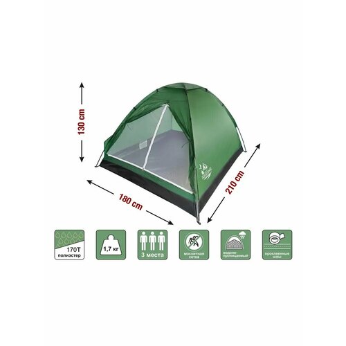 Палатка Coyote-3 (Койот-3), зеленая, ARIZONE (размер: 210х180х130 см) (28-274504)