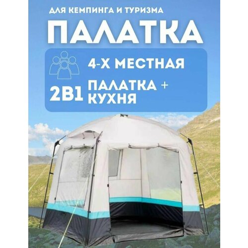 Палатка для зимней рыбалки 4-местная OL1132 туристическая/ Стационарная кухня/ Шатер летний, закрытый с москитной сеткой, для кемпинга