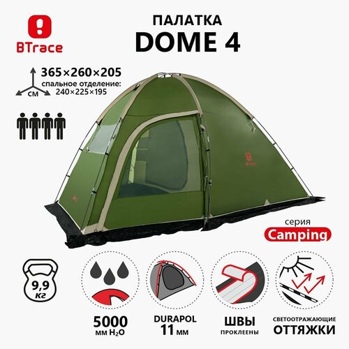 Палатка кемпинговая четырёхместная Btrace Dome 4, зеленый