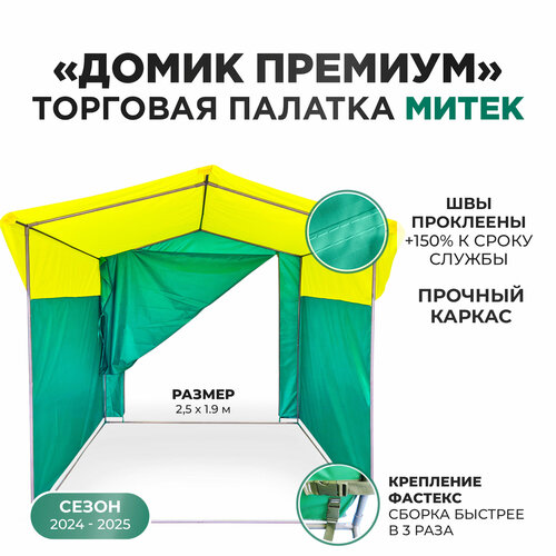 Палатка торговая Митек "Домик Премиум" 2,5х1,9 желто-зеленая (каркас из трубы Ø 18 мм, проклейка швов + стропа)