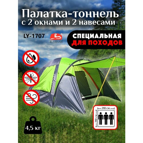 Модель LY-1707 отличается продуманным дизайном, предлагая пространство для трёх человек. Палатка снабжена тамбуром, который обеспечивает дополнительное место для хранения снаряжения и помогает защитить вход от дождя и ветра. Благодаря хорошей вентиляции, вы не столкнётесь с конденсатом внутри, что особенно важно в теплую погоду.