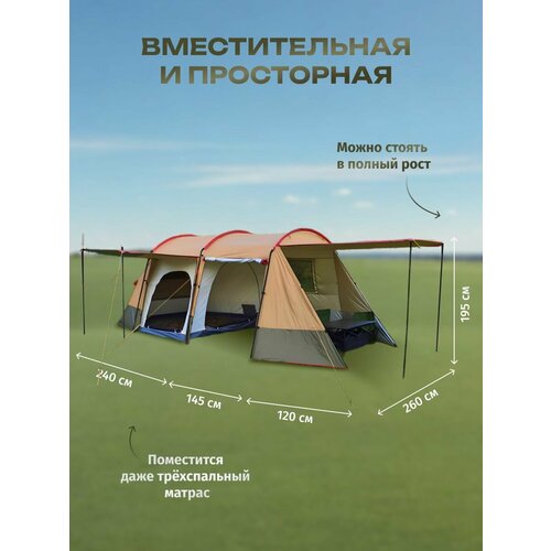 Большая палатка: обладает просторными размерами, позволяя с комфортом разместиться всем членам вашей группы!