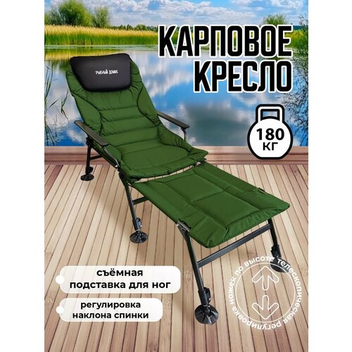 Кресло BIRDS AND FISH, карповое, для рыбалки, складное, туристическое, 180кг, зеленое