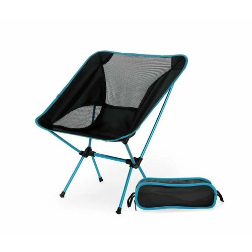 Складной стул туристический со спинкой для рыбалки и пикника голубой / складное кресло
