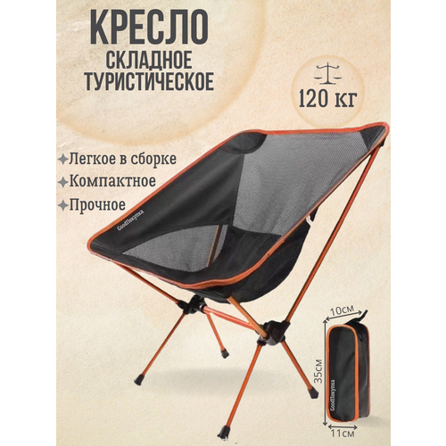Складной стул туристический со спинкой для рыбалки и пикника оранжевый / складное кресло