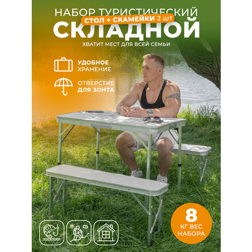Универсальный туристический набор, который станет незаменимым аксессуаром для вашего отдыха на природе. Кабор включает в себя складной стол и две скамейки, обеспечивая комфортное пространство для всей семьи или дружной компании.