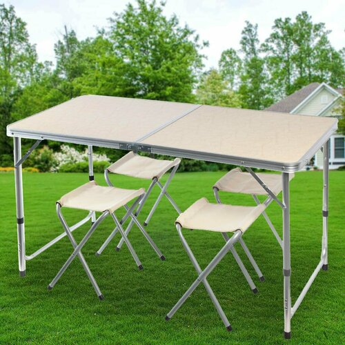 Стол складной металл, прямоугольный, 120х60х68.5 см, столешница МДФ, бежевый, Green Days, 4 стула