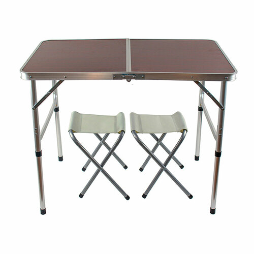 Стол складной туристический, коричневый д90*ш60*в71,5см + 2 табурета