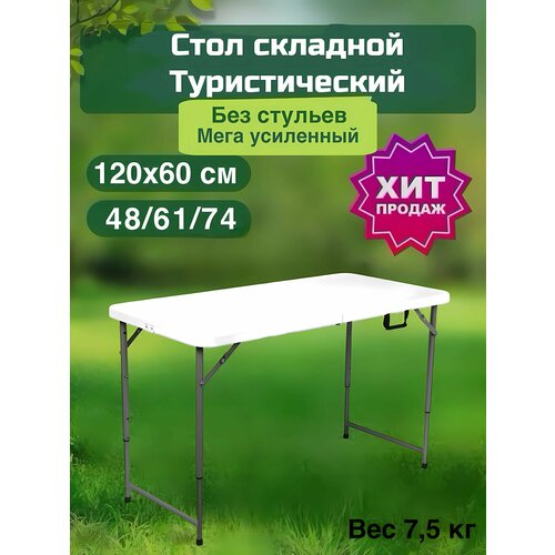 Стол туристичeский складной 120х60см , мега усленный белый