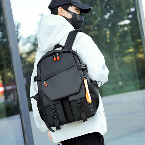 Мужской городской черный спортивный рюкзак из непромокаемой ткани и тремя большими универсальными отсеками для мобильного телефона, планшета и ноутбука диагональю 15.6, 16 дюймов. С модной водонепроницаемой дорожной сумкой, удобно поехать на работу, школу, учебу и путешествие. Тканевая вентилируемая ортопедическая спинка разрешает применять стильный ранец, как спортивный, туристический. Внутренний органайзер для документов и канцелярии поможет школьникам и подросткам, мальчикам и девочкам, детям и взрослым. На плечевых стеганых лямках анатомической формы есть разъем USB и AUX порт, боковые карманы для хранения помогут в путешествии, а багажная лента крепится к чемодану. Рюкзак можно взять как ручную кладь. Качественная фирменная брендовая фурнитура и молнии, оригинальные усиленные швы и металлическая ручка лямка, позволяет использовать фоторюкзак для перевозки фотоаппарата, инструментов. А износостойкий тканевый текстильный материал нейлон и полиэстер черного цвета защитит от воды при ходьбе и спорте, в походе, рыбалке, охоте. Молодежный текстильный красивый эргорюкзак, женский или мужской подойдет вам для тренировок, занятий спортом, фитнесом. Вы можете носить форму для художественной гимнастики, танцев, сменную обувь в спортзал, в бассейн для плавания, летом на пляж или чемодан велорюкзак. Рабочий офисный деловой средний дорожный рюкзак на размер 20, 25 литров и станет хорошим подарком, мужчине, женщине, студенту или ребенку подростку, и также подойдет для прогулок и поездок по работе, учебе. Тактический походный военный рейдовый повседневный вместительный рюкзак среднего размера можно взять с собой на охоту, рыбалку, как армейский баул для вещей.