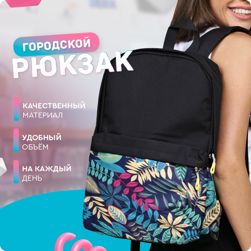 Рюкзак (черный с цветными листьями) Just for fun городской спортивный школьный мужской женский для ноутбука / сумка \ для мальчиков, девочек