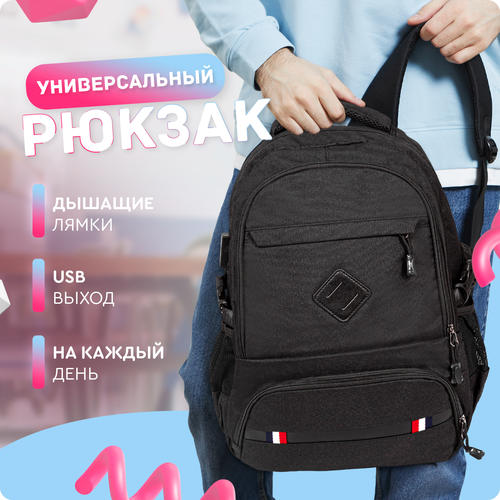 одно большое отделение,3 внешних кармана на молнии , 2 боковых открытых кармана. Ручка для переноски, регулируемые по длине лямки. Модель оснащена USB выходом, USB провод идет в комплекте. Стильный рюкзак создан для повседневного комфорта мужчин и женщин в городе. Все швы двойные, что в значительной степени увеличивает прочность городского рюкзака. Его форма идеально облегает спину, а мягкие лямки не впиваются в плечи и регулируются под любой рост взрослого, подростка и ребенка. Рюкзак выполнен из высокопрочного нейлона - выдержит вес учебников и тетрадей, одежды для занятий спортом. В два дополнительных кармана по бокам поместится бутылка для воды, зонт, полотенце или дождевик. Он большой и вместительный, имеет прочную застежку на молниях. Как женский, рюкзак станет незаменимым для беременных и кормящих мам, так как вмещает массу детских принадлежностей. Как мужской, рюкзак вместит все необходимые вещи: ключи, документы, телефон. Снаружи дополнен большим и удобным квадратным карманом. Наружный карман на молнии вмещает пенал для школьника, расческу для девочки. Имеется прочная ручка для переноски или для крючка. Туристический рюкзак подходит для охоты, рыбалки, дальних походов, сплавов, активного отдыха, горных и морских прогулок. Рыбак или охотник сможет уместить снаряжение, снасти для рыбалки, бинокль. Вместительный рюкзак станет незаменимым аксессуаром для любого мужчины. Отлично подойдет в качестве подарка для начинающего или опытного путешественника. Молодежный рюкзак можно использовать как сумку для пляжного отдыха, положить в него маску, купальник, полотенце, солнцезащитные очки. В нем будет обеспечена максимальная защита вещей от повреждений. Стильный непромокаемый рюкзак подойдет для пикника, тренировок, фитнеса, поездок.