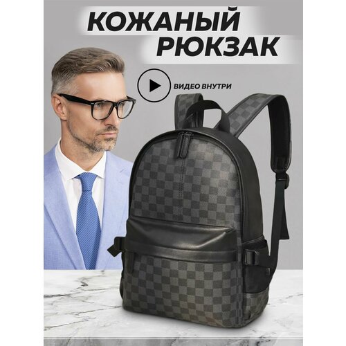 Рюкзак кожаный городской HaBe (Черный с серым)