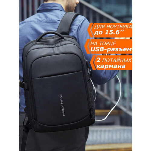 Рюкзак мужской городской дорожный Mark Ryden вместительный 22л, для ноутбука 15.6", водонепроницаемый, с USB, для взрослых и подростков, цвет черный