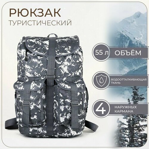 Рюкзак туристический, 55 л, отдел на шнурке, 4 наружных кармана, цвет серый/камуфляж