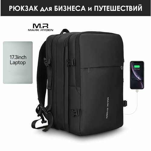 Стильный современный городской деловой Бизнес рюкзак Mark Ryden В универсальном исполнении, за счет чего одним движением превращается в чемоданчик Cabin Size дорожный рюкзак для путешествий. Объемный и вместительный. С ним удобно отправиться на работу, на учебу, в путешествие, в самолет поезд / машину да куда угодно! . Вместо тысячи слов посмотрите фото и видео в карточке товара!) . Характеристики: Объем рюкзака увеличивается с 23 до 40 литров. Размер рюкзака в обычном состоянии 50x32x15см. Размер рюкзака в увеличенном состоянии 50х32х25см ( войдет все необходимое для короткой поездки и командировок) Имеет 3 основных кармана с 7 отделениями, в том числе специальное отделение для ноутбука с диагональю до 17,3". Кроме того, есть передний карман на молнии с быстрым доступом и задний карман с защитой от кражи. Возможность носить на спине. Возможность цеплять на ручку чемодана. Крышка рюкзака открывается на 180 градусов. Регулируемые лямки обеспечивают плотное прилегание. Спинка и лямки имеют анатомическую форму, имеют мягкий дышащий материал, который обеспечивает хорошую циркуляцию воздуха. Дополнительный ремень с застежкой на груди для лучшей фиксации и удобства. Рюкзак имеет большое количество внутренних и внешних потайных карманов позволят организовать хранение вещей таким образом, чтобы они были надежно защищены, но при этом оставались легкодоступны для своего владельца. Удобно расположенный USB порт позволит подключить телефон к зарядному устройству, не снимая рюкзак. Для этого достаточно подключить заранее во внутреннем кармане Ваш Power Bank к внешнему USB порту. Небольшой кармашек на лямке идеален для хранения проездного документа или банковской карты. Водоотталкивающий материал оксфорд обеспечивает защиту содержимого от влаги и промокания. Фурнитура от мирового производителя YKK качество и надежность в каждом элементе Премиальное качество пошива! Размер рюкзака позволяет взять его в самолет, как ручную кладь. Подарите себе или близким вам людям действительно хорошую и удобную вещь!