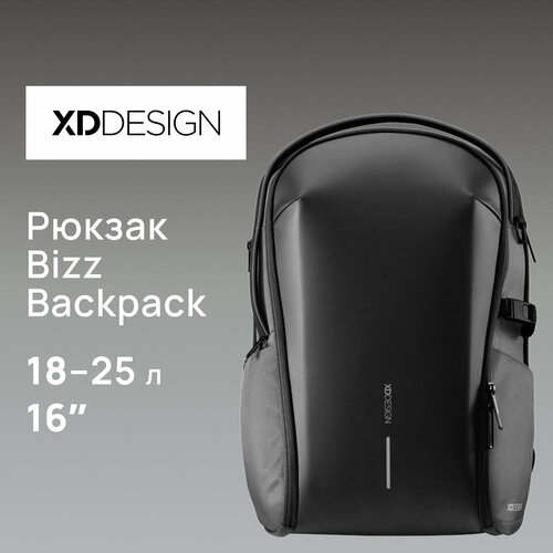 Bizz Backpack — рюкзак для повседневного использования, деловых поездок и комфортных путешествий налегке. Внутренний объем меняется от 18 до 25 литров одним движением молнии. Для ноутбука до 16” и планшета до 12,9” предусмотрено отделение-органайзер. Размер кармана для ноутбука: 39 x 28,5 x 2,5 см. Размер кармана для планшета: 39 x 28,5 x 1 см.