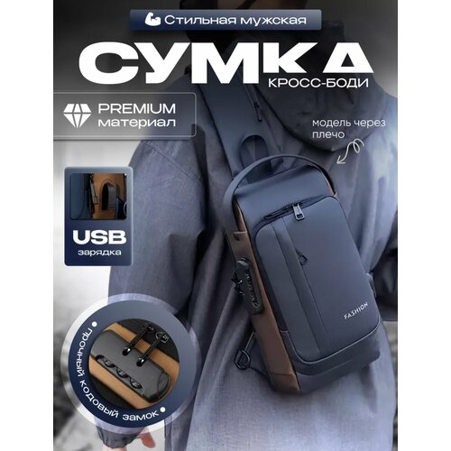 Дорожная сумка рюкзак противоугонный через плечо туристический с кодовым замком, универсальный повседневный с usb глубокий синий- темно коричневый