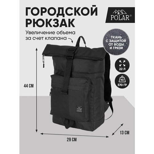 Стильный рюкзак фирмы POLAR для прогулок и учебы, путешествий и спорта, работы, школы, института с верхним клапаном на удобной пряжке. Такая конструкция позволяет менять объем рюкзака, когда вы захотите увеличить его основное отделение за счет клапана на застежке. Так же верхний клапан — это дополнительная защита ваших вещей от краж и дождя. Рюкзак выглядит очень современно. Он универсален и очень надежный, подходит как для мужчин, так и для женщин. Материал рюкзака с водо- и грязеотталкивающей пропиткой. Эргономические лямки с сетчатыми уплотнителями делают этот рюкзак очень комфортным в использовании и снимают лишнюю нагрузку. Регулирующая грудная стяжка с удобным фиксатором. Основное отделение закрывается на молнию и регулирующую застежку с клапаном на пряжке. Внутри один большой карман для документов формата А4, планшета или ноутбука до 15" и небольшой карман на молнии. Есть накладной карман на молнии для карточек, ключей. Длина лямок 82 см, ширина 7,5 см.