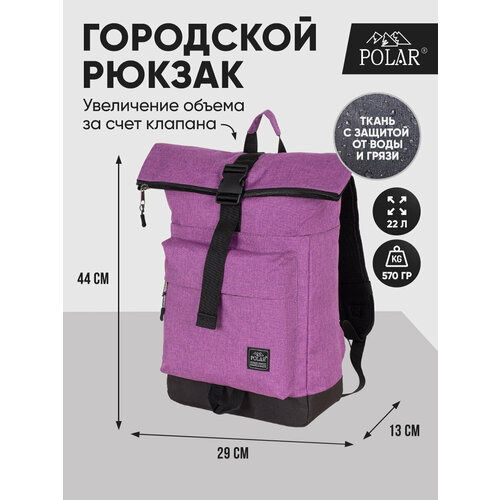 Стильный рюкзак фирмы POLAR для прогулок и учебы, путешествий и спорта, работы, школы, института с верхним клапаном на удобной пряжке. Такая конструкция позволяет менять объем рюкзака, когда вы захотите увеличить его основное отделение за счет клапана на застежке. Так же верхний клапан — это дополнительная защита ваших вещей от краж и дождя. Рюкзак выглядит очень современно. Он универсален и очень надежный, подходит как для мужчин, так и для женщин. Материал рюкзака с водо- и грязеотталкивающей пропиткой. Эргономические лямки с сетчатыми уплотнителями делают этот рюкзак очень комфортным в использовании и снимают лишнюю нагрузку. Регулирующая грудная стяжка с удобным фиксатором. Основное отделение закрывается на молнию и регулирующую застежку с клапаном на пряжке. Внутри один большой карман для документов формата А4, планшета или ноутбука до 15" и небольшой карман на молнии. Есть накладной карман на молнии для карточек, ключей. Длина лямок 82 см, ширина 7,5 см.