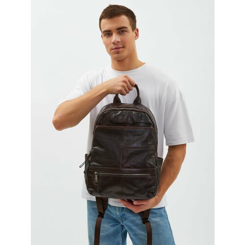 Рюкзак городской PouchMan, мужской, натуральная кожа, большой, для ноутбука, 15 л, 29х41х13 см, коричневый